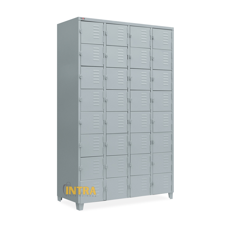 O Roupeiro de Aço 32 Portas Mini é ideal para empresas, academias, escolas e vestiários industriais que exigem alta capacidade de armazenamento individual com segurança e praticidade. Fabricado em aço reforçado, possui portas ventiladas e pitão para cadeado em cada compartimento.