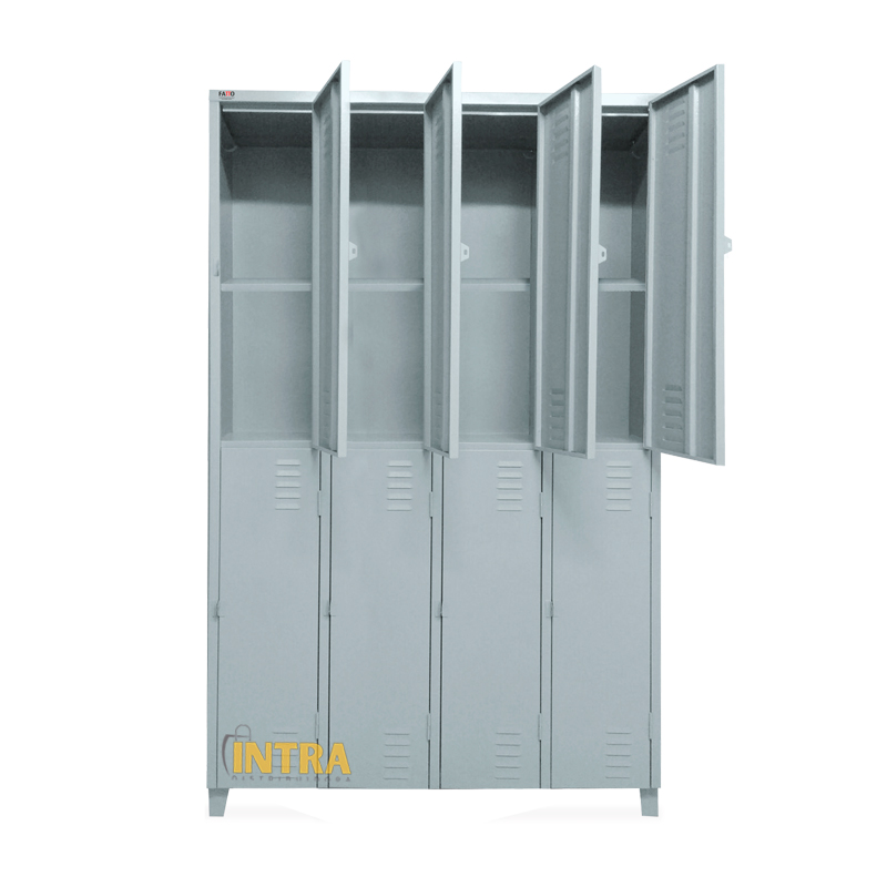 O Roupeiro de Aço 8 Portas Grandes com Prateleira é perfeito para ambientes que exigem organização interna aprimorada, como vestiários industriais, empresas, escolas e academias. Cada compartimento possui porta ventilada, pitão para cadeado e prateleira superior para melhor divisão de objetos.