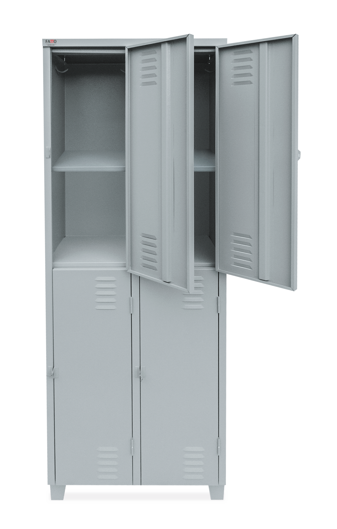 O Roupeiro de Aço 4 Portas com Prateleira é uma excelente opção para ambientes que exigem organização individual eficiente, como academias, empresas e vestiários industriais. Equipado com prateleira interna superior, permite a separação de pertences com praticidade. As portas são ventiladas e contam com pitão para cadeado, garantindo segurança individual.